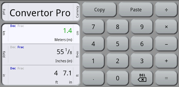 Convert any measurement – even mixed units, like feet+inches – quickly & easily.